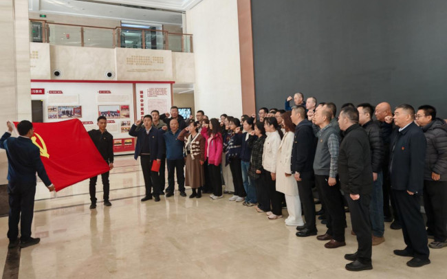 活动开始,全体党员在宁夏农垦展览馆门口整齐列队,在领誓人陈军的带领下,面向鲜红的党旗,右手握拳,以饱满的热情和昂扬的斗志重温入党誓词。