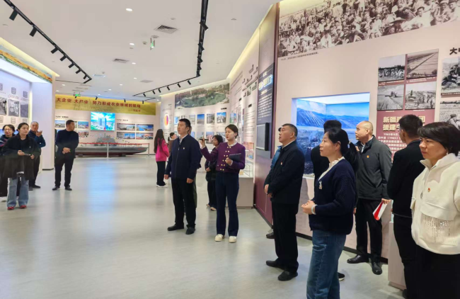 在讲解员的带领下,党员们走进宁夏农垦展览馆、社科院地方志展厅、科研成果展厅了解宁夏农垦发展变迁、特色产业和社科院科研成果。在自治区林草局,工作人员通过智慧林草云平台系统,向全体党员展示宁夏林草建设成效。