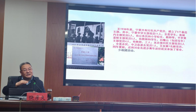 活动邀请自治区党委党史研究室主任饶彦久担任主讲嘉宾,以《擦亮宁夏红色文化名片》为专题,紧扣党的二十届四中全会及自治区党委十三届十一次全会关于红色文化建设的工作部署,系统梳理了宁夏红色文化的历史发展脉络,深入阐释其核心内涵,并结合时代发展剖析了宁夏红色文化的当代价值,为在场人员带来了一场内容翔实、见解深刻的学术分享。