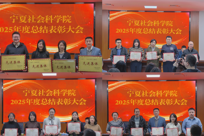 2月10日,宁夏社会科学院召开总结表彰大会,院党组书记刘雨回顾总结了2025年成果、部署了2026年工作。院长马文锋宣读了表彰决定。副院长田富军主持会议。会议对获得先进集体荣誉称号的科研组织处、民族研究所、马克思主义研究所、《宁夏社会科学》编辑部4个处室和王林伶等23名先进个人进行了表彰。